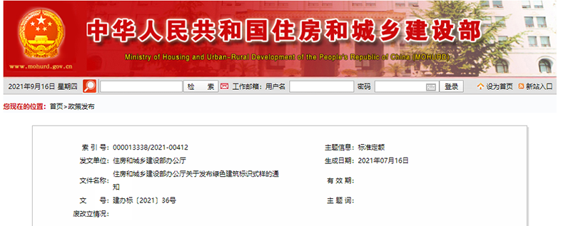 按照《绿色建筑标识管理办法》(建标规〔2021〕1号)要求,我部进一步完善了绿色建筑标识证书式样,增加了标牌式样,现予以发布。有关事项通知如下: