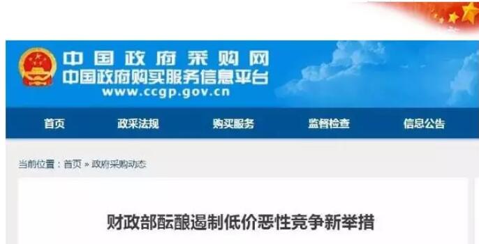 据悉,财政部近日在答复全国人大代表建议时提出,将通过继续推进政府采购结果导向,探索建立用户评价机制,研究修改相关制度办法,继续加强诚信体系建设等举措,着力解决政府采购活动中存在的低价恶性竞争等问题。