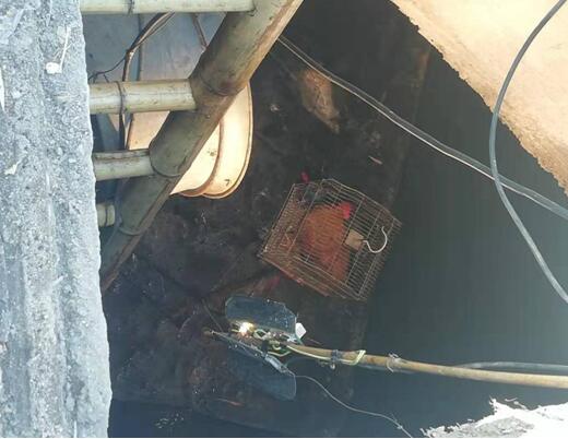 2、施工人员进入前检测暗渠内的氧含量。氧含量检测方法采用放活体动物进入暗渠,测试30分钟后如无异常,再进入作业。如下图