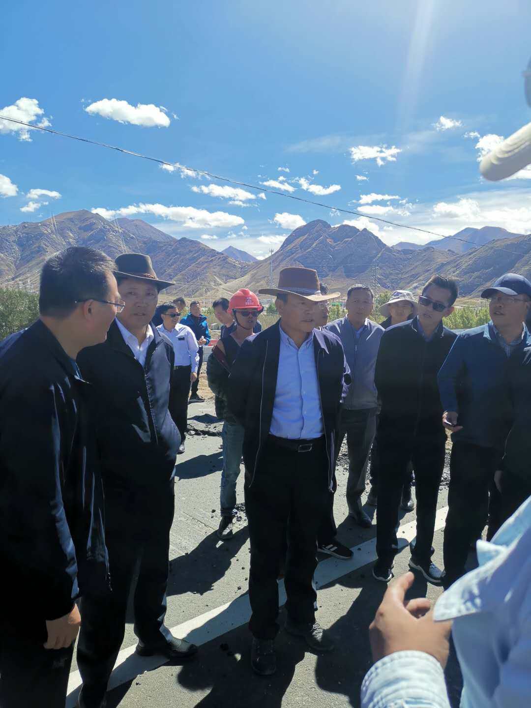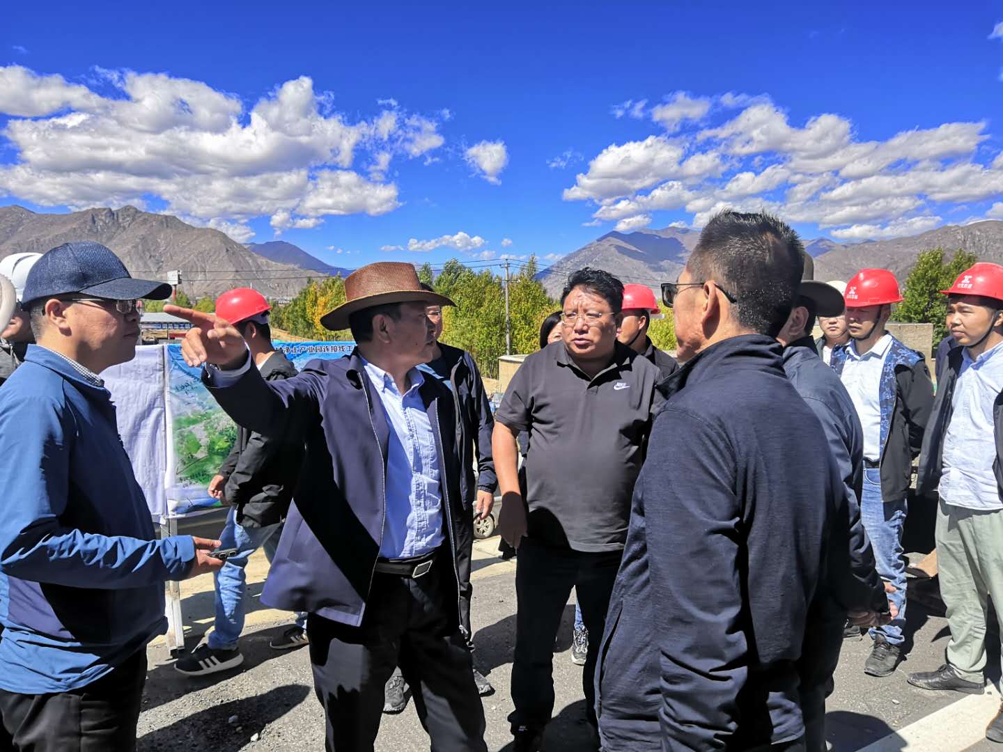 2020年10月8日西藏自治区党委常委、拉萨市委书记白玛旺堆、市长果果率市建设局、区建设局、区管委会等相关部门领导现场调研拉萨市柳梧新区桑达村净土产业园连接线工程施工进度和建设情况。