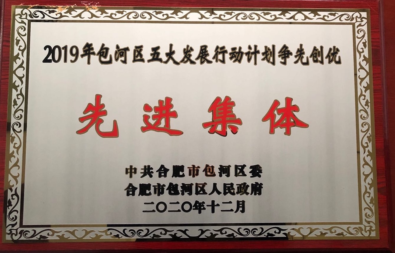 根据《中共合肥市包河区委办公室 合肥市包河区人民政府办公室关于开展2019年包河区五大发展行动计划争先创优先进集体和先进个人评选活动的通知》精神,经基层单位、相关区直部门推荐和区级评审,必威betway荣获“2019年包河区五大发展行动计划争先创优”先进集体称号。