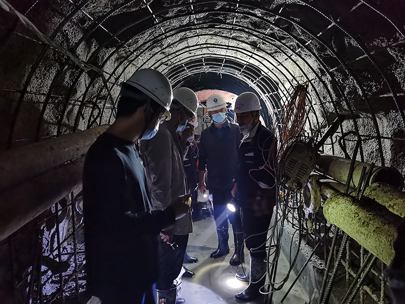 5号隧洞地质条件复杂多变,岩芯较破碎,多呈碎块状,风化带中地下水较为丰富,多呈线状、股状。并且围岩极不稳定,开挖时有塌方、涌水现象。在施工过程中,面对这些困难,项目部全体员工毫不畏惧,严格遵循"短进尺、弱扰动、快循环、快支护、强支护、勤观察、勤排水",一次支护紧跟掌子面,及早封闭开挖岩面的原则,合理安排工序,精心组织施工,优化开挖方法,积极采取有效的管控措施,克服了施工中的一个个难题,顺利完成了隧洞精准贯通的硬任务,最终实现整条隧道快速、高效、质量安全“零事故"目标。
