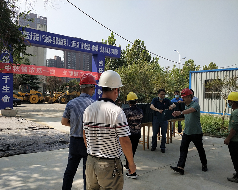 9月18日,在中秋、国庆双节来临之际,庐阳区重点工程管理中心何平副主任、市政建设科科长李继明,在项目临时党支部书记陪同下组成慰问组,来到公司承建的庐阳区清源路(气象局-现状清源路)开展“中秋情浓系一线,支部慰问暖人心”活动。