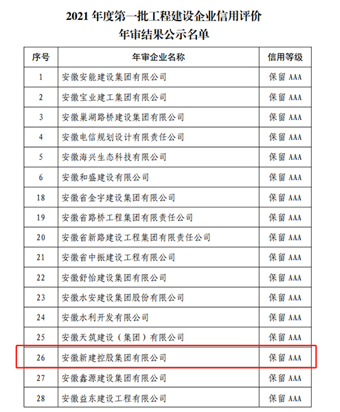 近日,中国施工企业管理协会发布关于2021年度第一批工程建设企业信用评价结果的公示,必威betway凭借良好的生产经营业绩、健全的管理体系以及规范的诚信建设成果,顺利通过2021年社会信用评价“AAA”级年审认定。