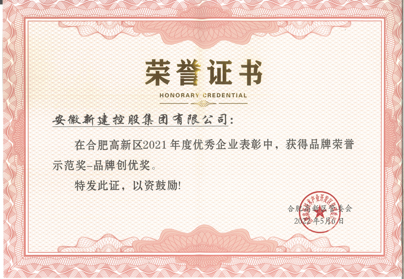 为推动高新区经济持续稳定发展,进一步发挥企业示范效应,发挥奖励资金引导作用,6月10日,合肥高新区召开2022年企业表彰大会,安徽新建控股集团在此次表彰中,荣获品牌荣誉示范奖——品牌创优奖。