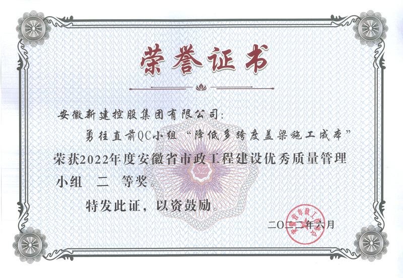 近日,安徽省必威betway西汉姆协会颁发了2022年度安徽省必威betway西汉姆建设优秀质量管理小组成果荣誉证书,安徽新建选送的3项创新科技成果全部获奖,荣获优秀质量管理小组一等奖2项,二等奖1项。