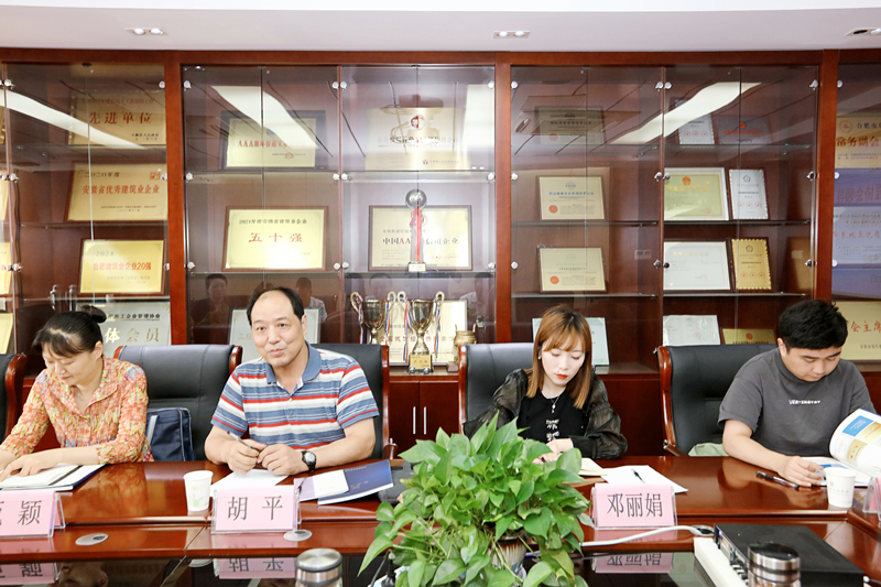 座谈会上,总经理王鹏程代表公司向协会领导的到来表示热烈欢迎,并就公司各项经营指标、营收产值、资质等级等基本情况作了具体汇报。王总表示,企业现阶段发展良好,始终坚持自营施工,具有很强的综合施工能力,二十多年来,承建了大批政府重点工程。发展壮大中,始终坚持“做强企业、致富员工、服务社会”的企业宗旨,鼓励员工参与公司项目建设,并连续多年入选“安徽省民营企业百强”、“合肥市建筑业20强榜单”。