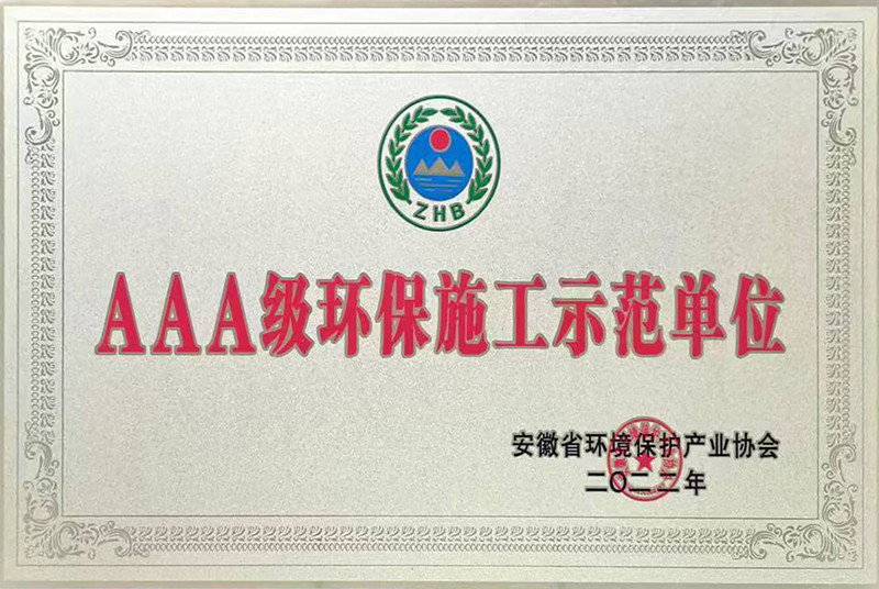 近日,集团公司收到安徽省环境保护产业协会颁发的奖牌,根据皖环协(2022)第47号文件精神和《建设施工领域环境信用评价标准》的要求,安徽新建荣获2022年度安徽省“AAA级环保施工示范单位”称号。
