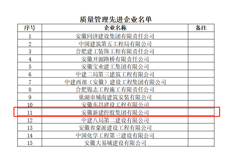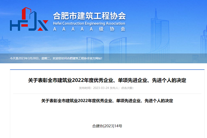 近日,合肥市建筑工程协会发布《关于表彰全市建筑业2022年度优秀企业、单项先进企业、先进个人的决定》,安徽新建斩获多项荣誉——“合肥建筑业2022年度优秀施工企业”、“合肥建筑业2022年度质量管理先进企业”称号;集团公司工程管理中心陶春华、高峰被授予“合肥建筑业2022年度优秀项目经理”称号,蔡伟、陈玉怀、姚琪被授予“合肥建筑业2022年度优秀劳资专管员、质量管理先进个人、安全管理先进个人”称号。