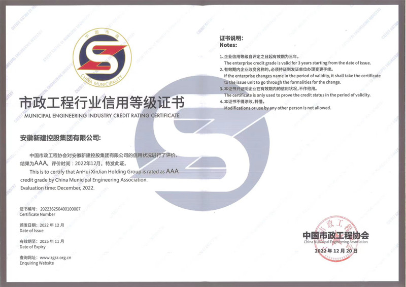 此次“AAA”等级信用企业的取得,体现了市场对公司整体实力、品牌形象和企业诚信建设的高度肯定。公司将再接再厉,以信誉求发展,持续加大市场开拓力度,不断提高诚信服务意识和水平,促进企业持续健康高质量发展,为推动工程建设企业信用体系建设做出更大贡献。