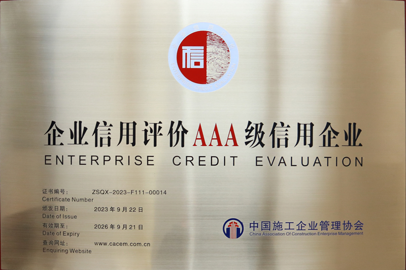 企业信用评价是社会信用制度的重要组成部分,是企业获得政府扶持以及企业商务往来、招商、投资、信用担保、融资的通行证。连续多年获得工程建设诚信典型企业、企业信用评价AAA级信用企业荣誉,是安徽新建多年来诚信经营的具体体现,也是集团信誉、履约能力、文化建设、社会责任成绩优异的生动展示。