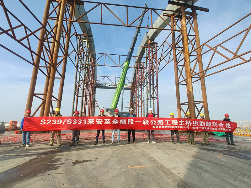 11月10日,随着最后一节钢管拱肋节段吊装,严丝合缝安装在桥墩上,集团公司承建的S239/S331来安至全椒段一级公路工程主桥拱肋顺利合龙,为下一步大桥吊杆系杆施工打下坚实基础。