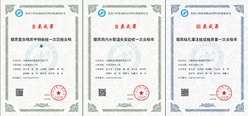 近日,中国水利工程协会公布了2024年度水利工程优秀质量管理小组成果,集团公司申报的3项成果获评2024年度水利工程优秀质量管理小组成果奖,其中Ⅱ类成果2项,Ⅲ类成果1项。