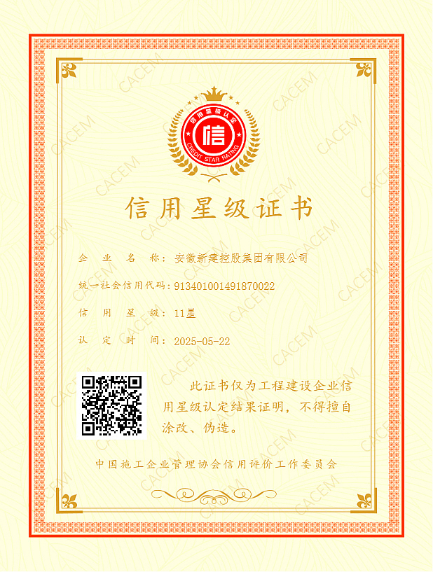 近日,中国施工企业管理协会公布2025年度工程建设企业星级认定结果,新建集团凭借良好的企业履约行为和信用表现,获得信用星级十一星认定,较上年再升一星,进一步增强了市场竞争力。