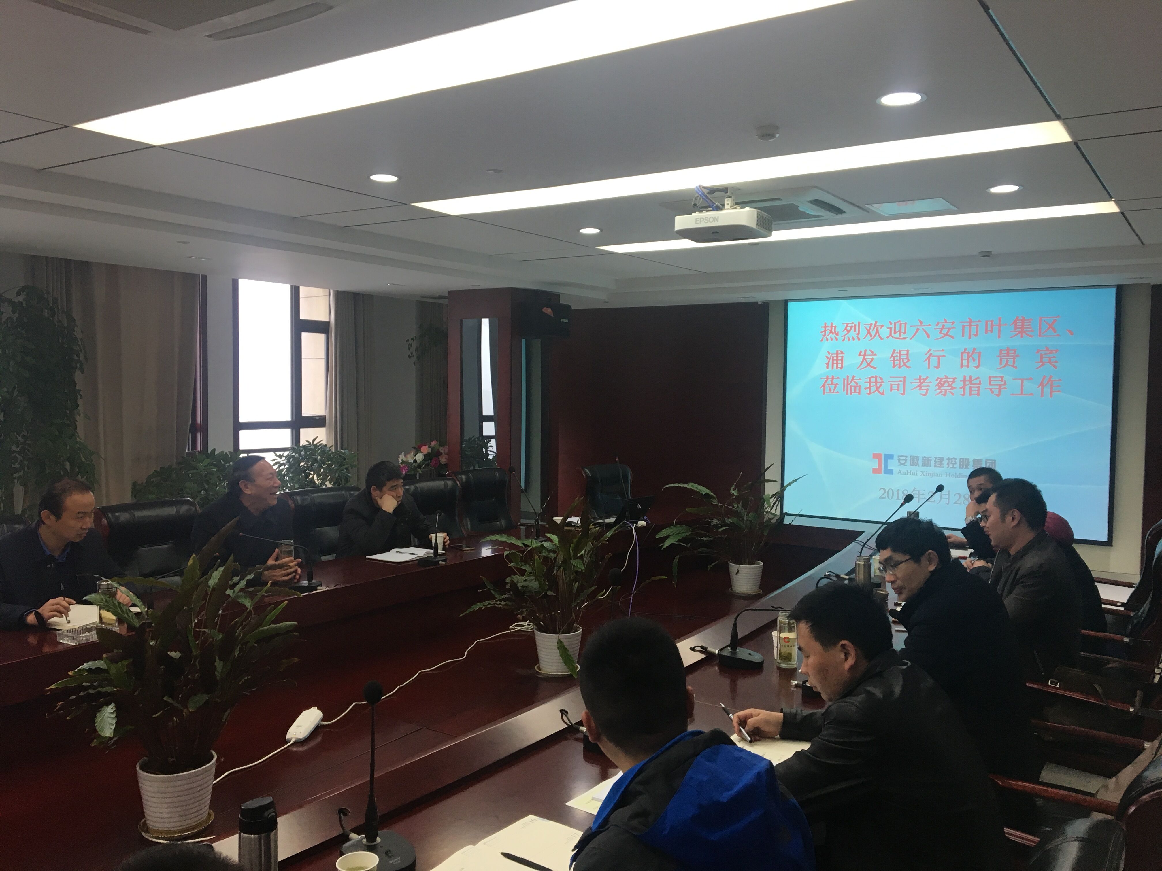 2018年8月28日上午,六安市叶集区财政局副局长、浦发银行芜湖分行熊赟副行长、六安市叶集建设投资经营有限责任公司王磊董事长等一行来我公司洽谈工程项目融资事宜,必威betway王杰英董事长及相关领导热情接待。