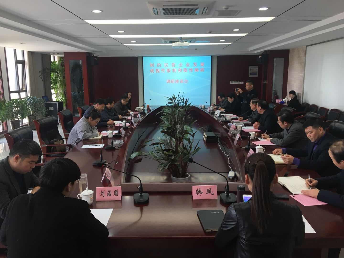 2018年3月13日下午,安徽省工商联在我公司举办“制约民营企业发展歧视性限制和隐性障碍调研座谈会”。出席会议的有安徽省政协副秘书长、安徽省工商联党组成员、副主席施广勇、安徽省工商联政策研究室主任李增流、安徽省工商联机关党委副主任科员袁志慧、安徽省城市基础设施投资商会的监事会主席、执行会长、副会长、秘书长等各位企业家代表。