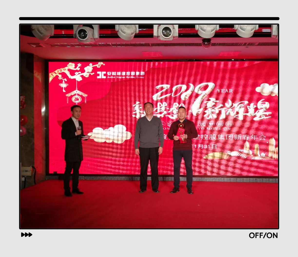 1月31日下午,安徽新建控股集团2019新春年会在合肥市蜀山区港汇广场同庆楼酒店盛大举行,集团公司全体员工及项目部部分员工载歌载舞、欢聚一堂。