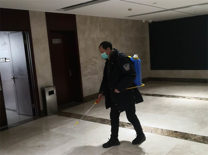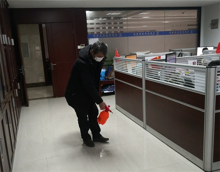 清晨由专业人员对公共办公区域进行消毒杀菌