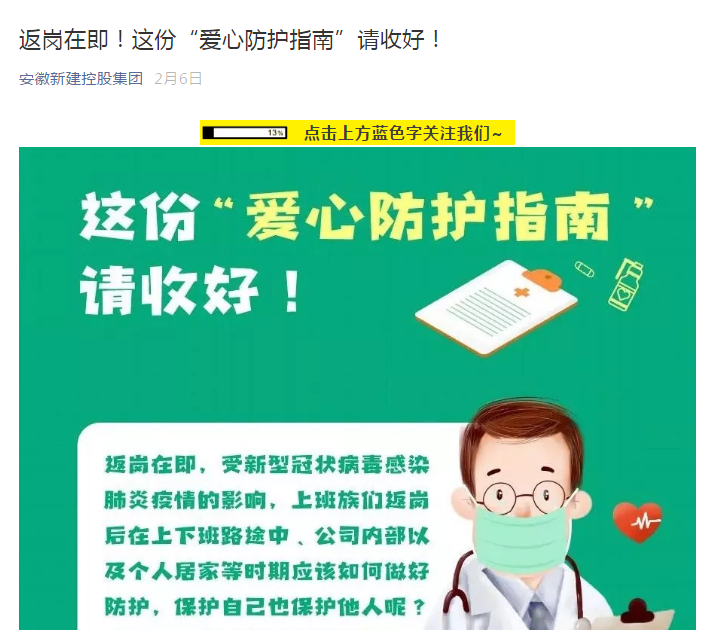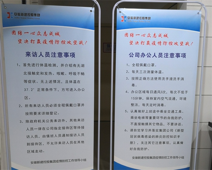 公司通过宣传展架、微信公众号积极宣传疫情防控的知识、要求和注意事项