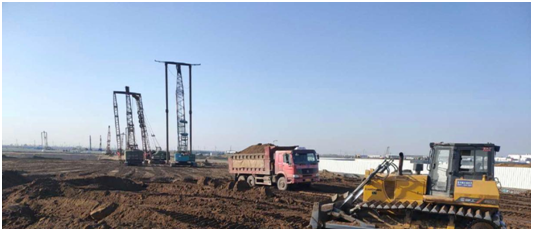 复工后,在公司正确领导下和当地政府的支持下,项目部积极协调多方资源,一手抓疫情防控工作,一手抓施工生产,全面做好项目安全生产工作,把各项措施落实落地。项目目前已进入收尾阶段,在2020年3月30日交地工作任务仅剩4187m³碎石未铺筑碾压,对场区土方、河砂回填料运输、碾压,地基强夯处理均已完成。
