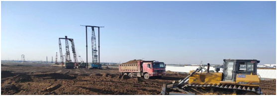 宝马第三工厂项目位于沈阳经济技术开发区中德产业园,项目总占地面积 2.9 平方公里。本项目为回填标段,场地按要求分为中心核心区和一般场区,其中核心区的承载力要求达到 300KPa,一般场区承载力要求达到 150KPa。本项目为回填标段,包括场区土方、河砂回填料运输、碾压,地基强夯处理,碎石垫层铺设等。